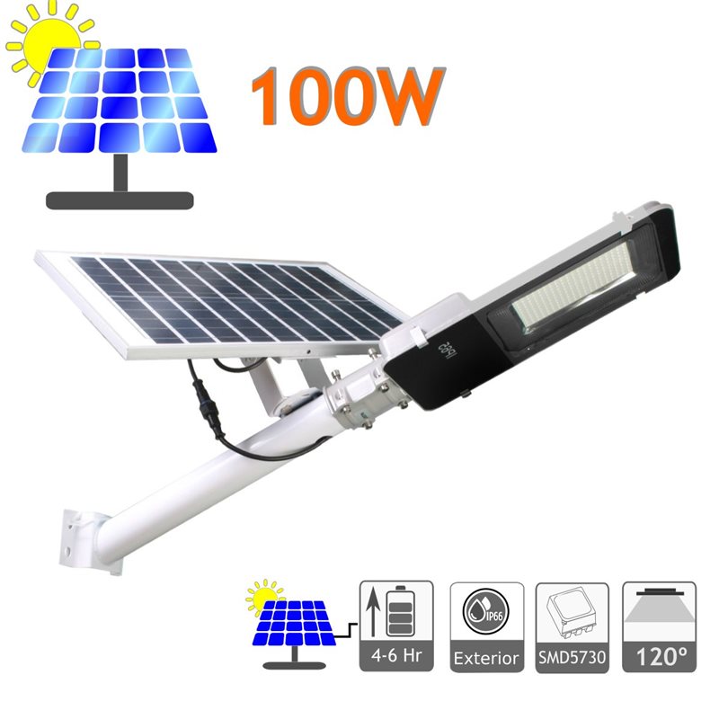 Farola de 100W con panel solar orientable.