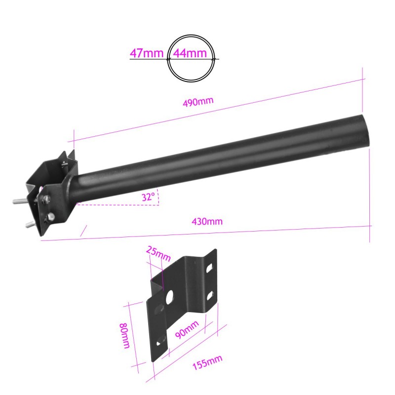 Fabricado en chapa de acero de 1.5mm de espesor, tubo de 47mm de diámetro exterior y 490mm de largo, pintado con pintura en polvo color negro para protegerlo de la corrosión durante años.